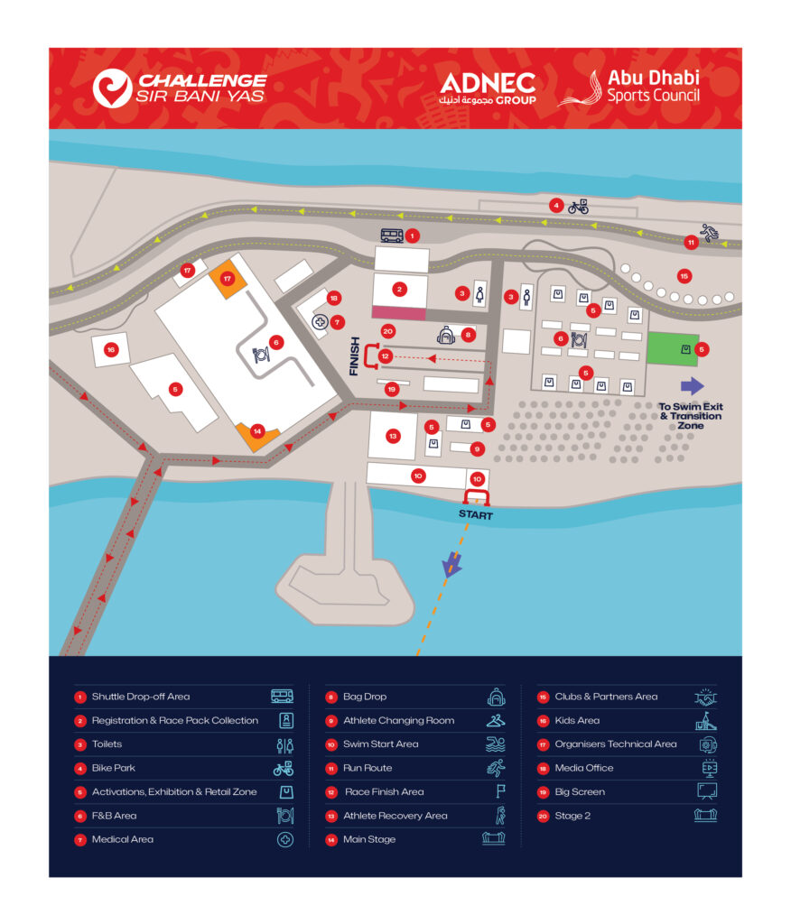 Please see the below layout of the Race Village on Terminal Beach, Sir Bani Yas Island.